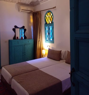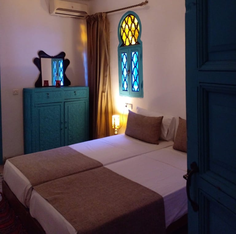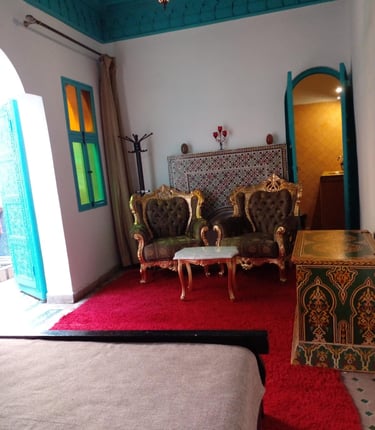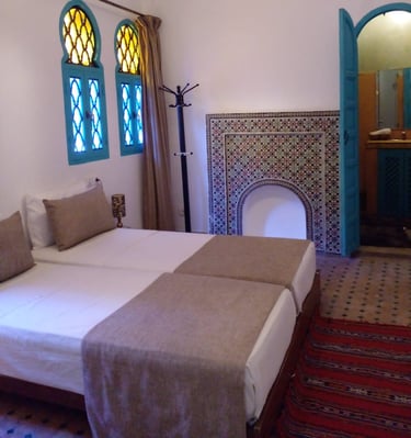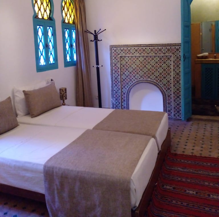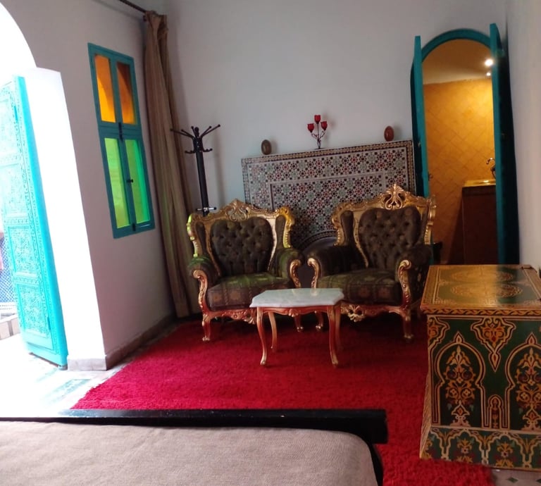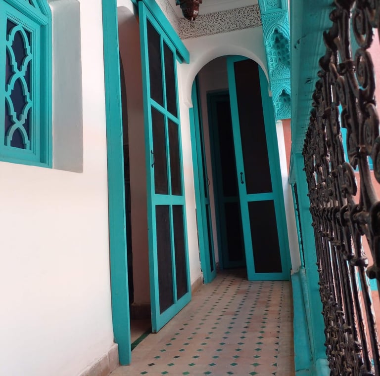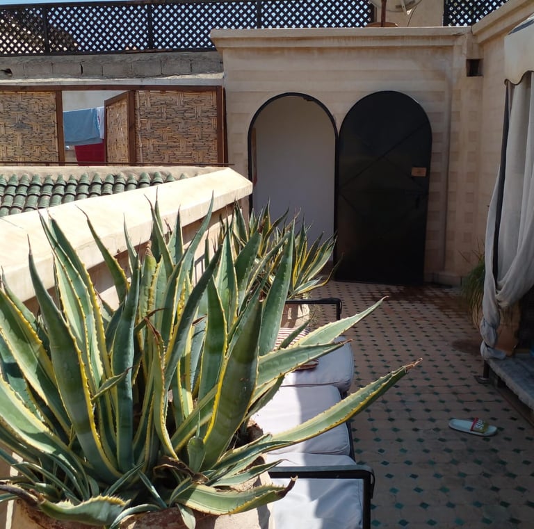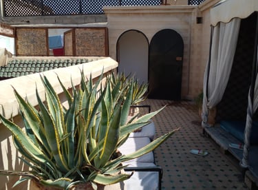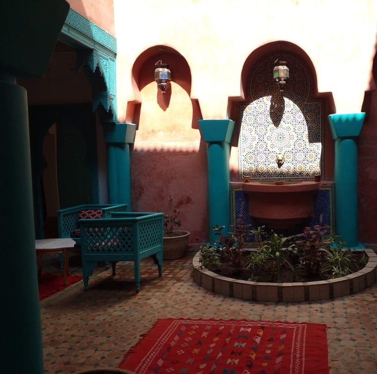 Traditional Moroccan architecture, private courtyard, rooftop terrace.